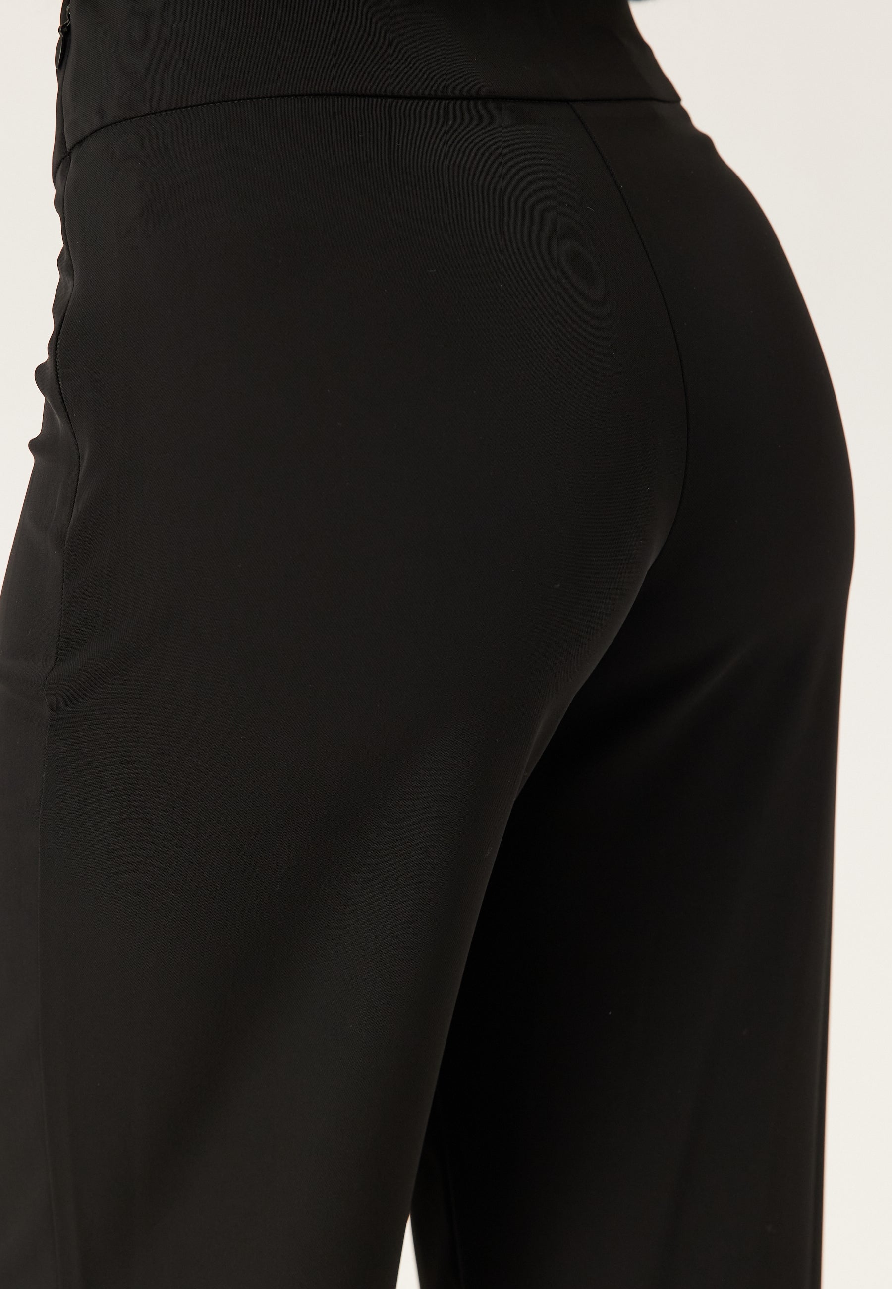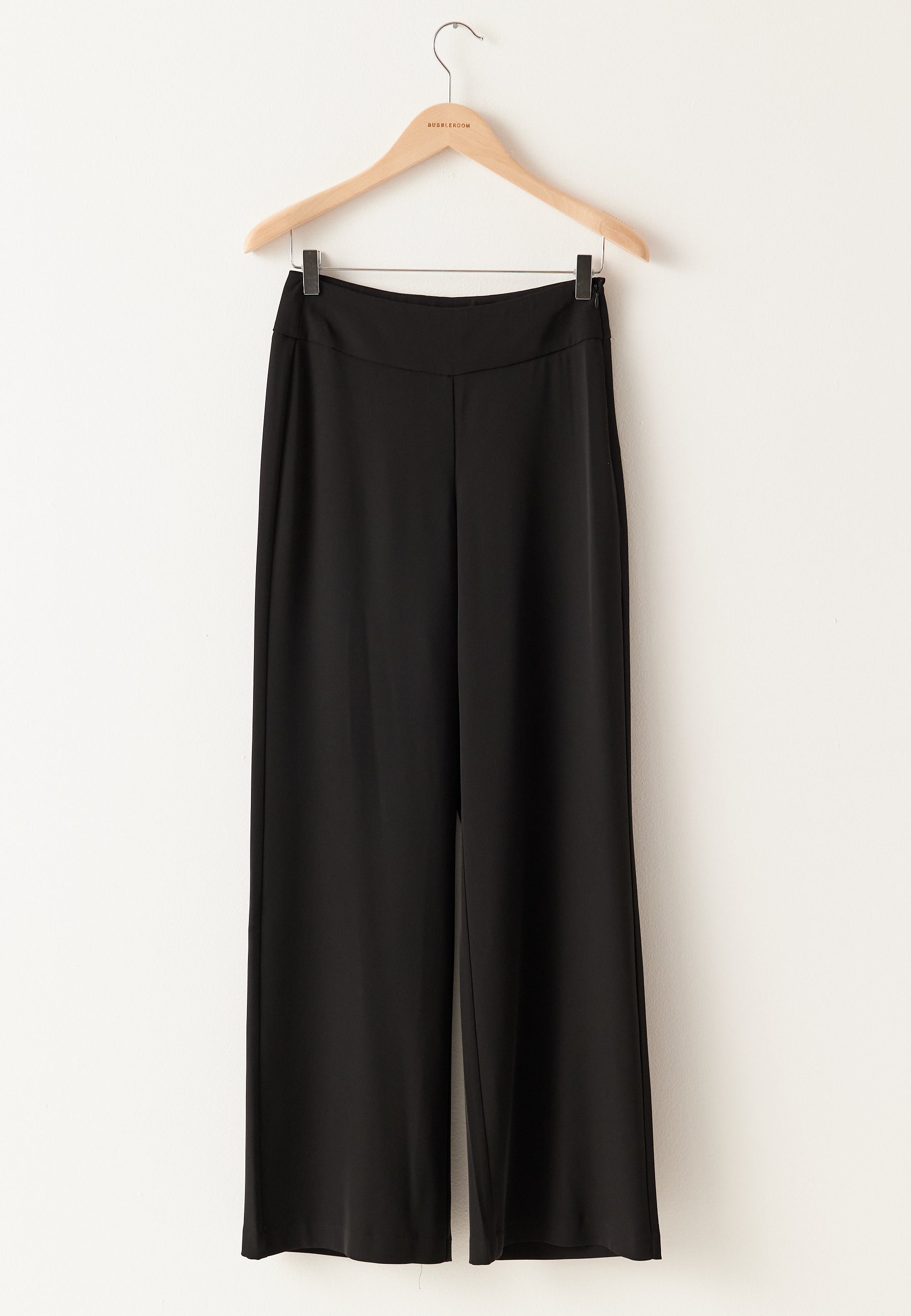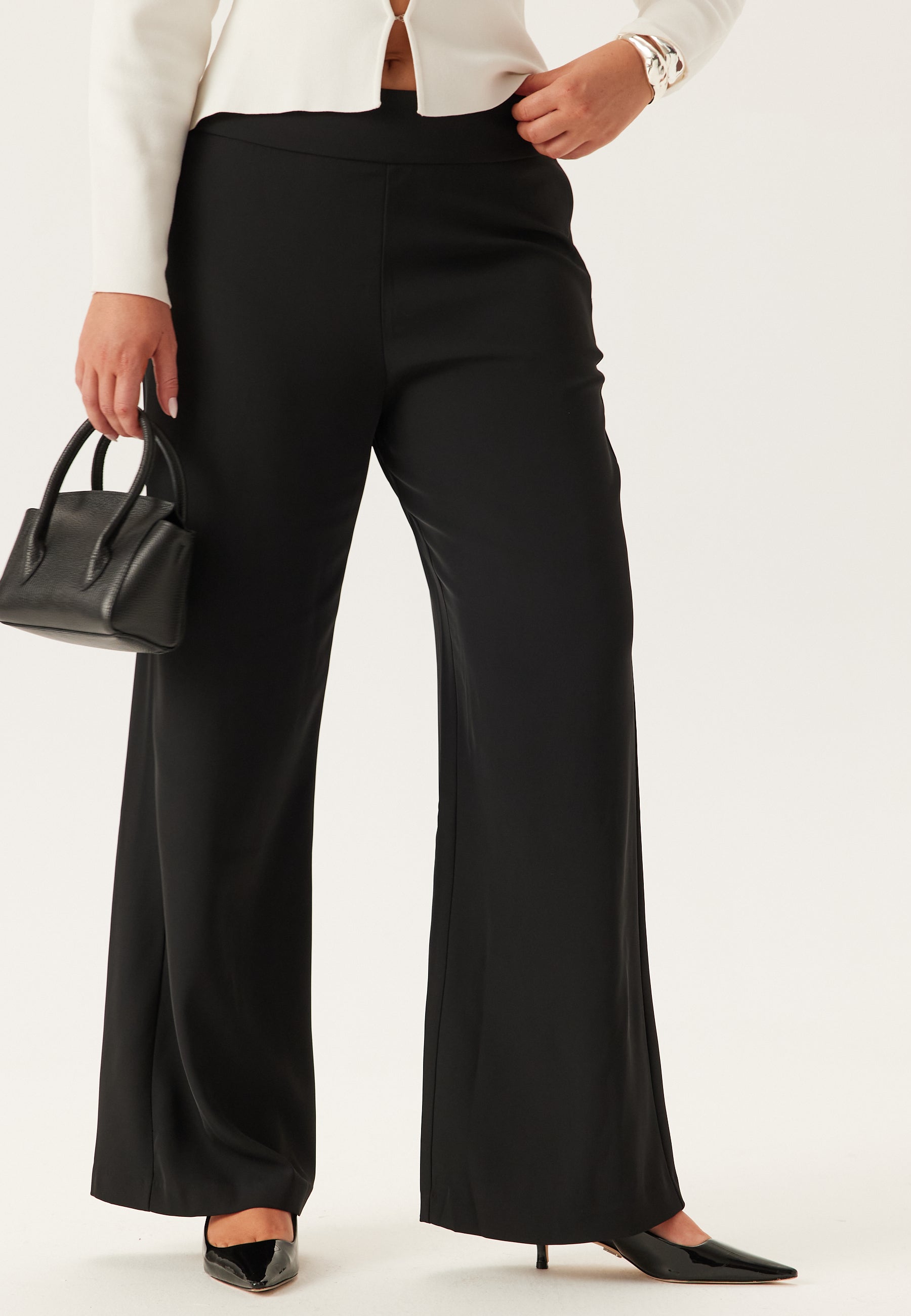 De här svarta byxorna med vida ben har en smickrande hög midja och är ett enkelt val till jobbet, middagsplaner eller när du vill klä upp dig med klackar men ändå känna dig bekväm. Passformen sitter fint upptill och faller sedan i långa, mjuka ben för en ren och smickrande silhuett som är extra snygg med stickat, figurnära toppar eller en kavaj.