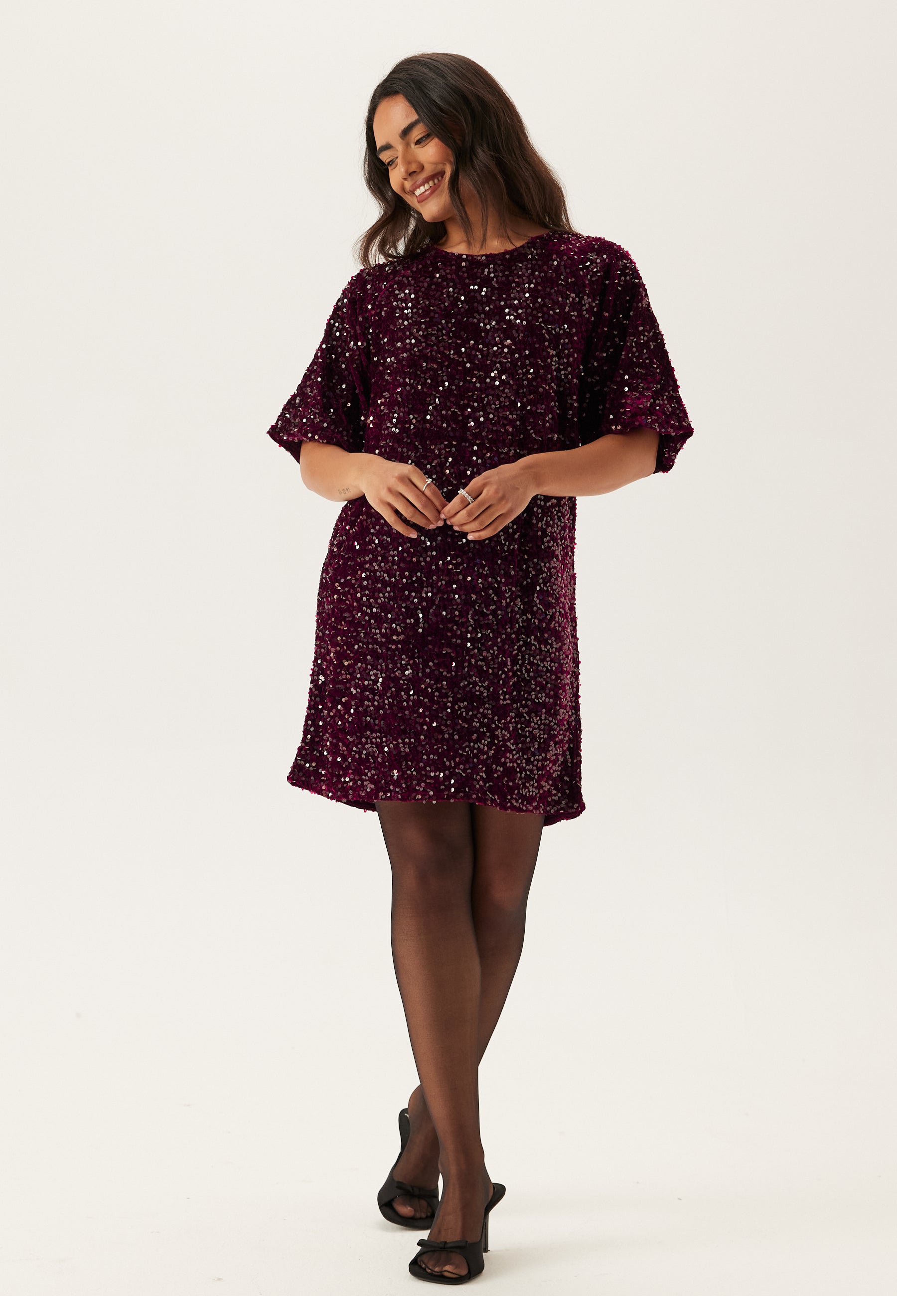 Kortärmad paljettklänning från Pieces