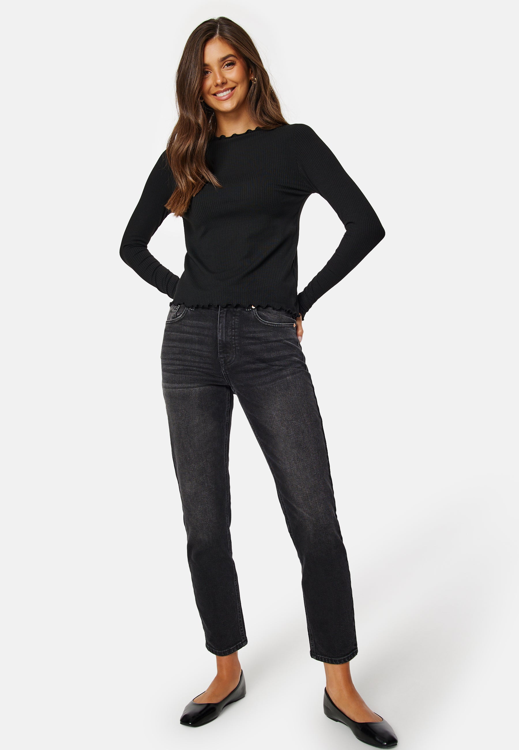 - Rundad halsringning.
