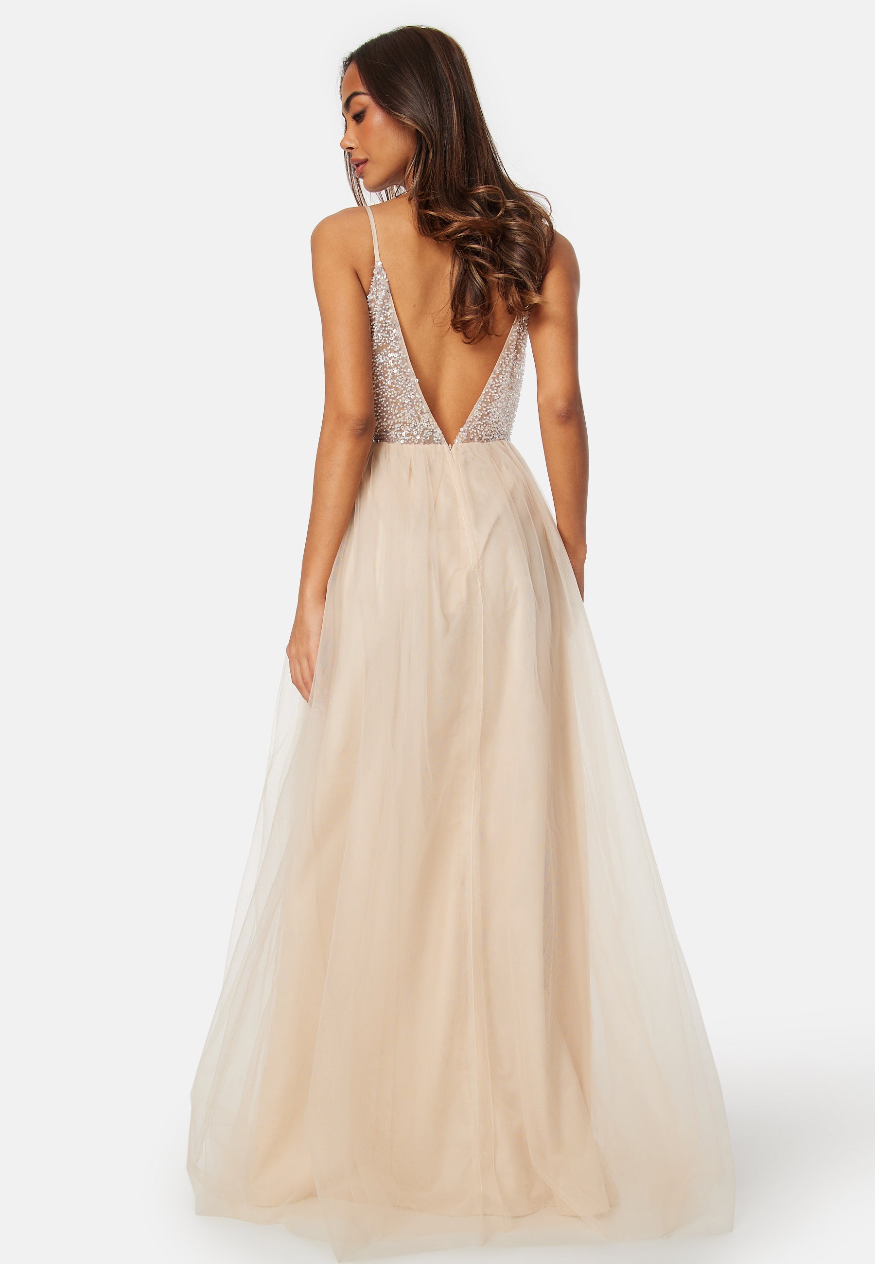 Elegant balklänning från Bubbleroom Occasion med ett broderi på överdelen.