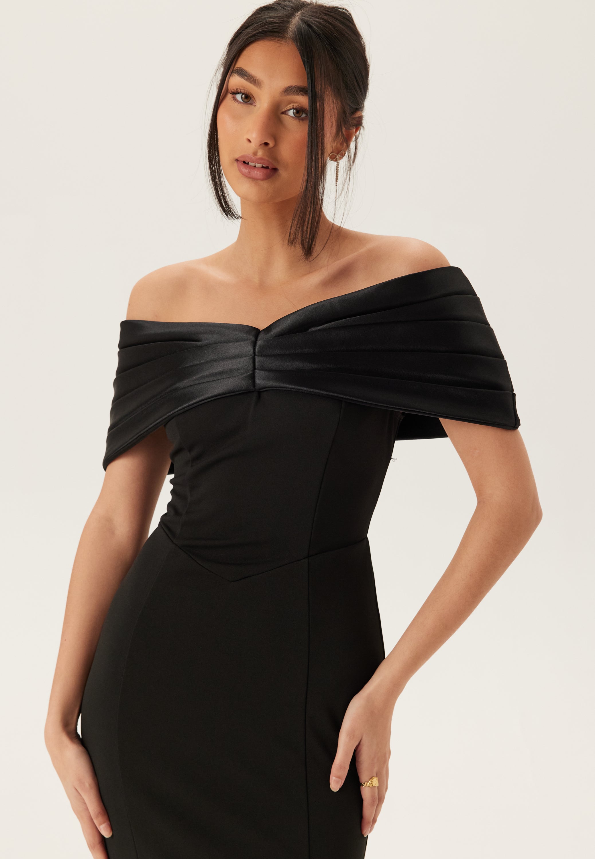 Den här svarta maxiklänningen med bara axlar är gjord för bröllop, bal och andra festliga kvällar när du vill ha en stilren, skulpterad look utan att känna dig begränsad. Den figurnära passformen följer kroppen snyggt, medan den långa kjolen i sjöjungfruinspirerad modell ger den där uppklädda känslan hela vägen ner.