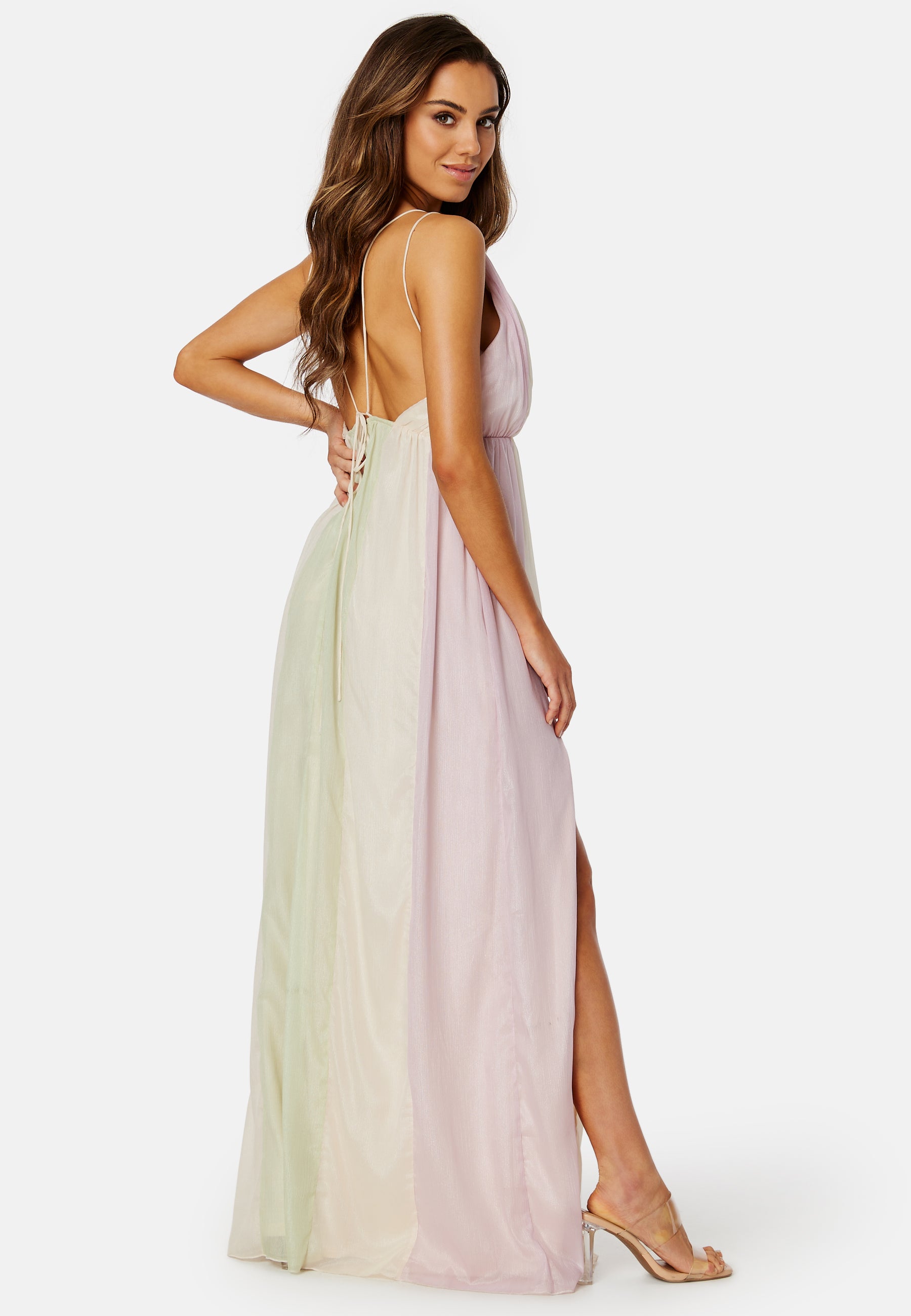 Härlig klänning från Bubbleroom Occasion med en öppen rygg. Den har ett knytband.