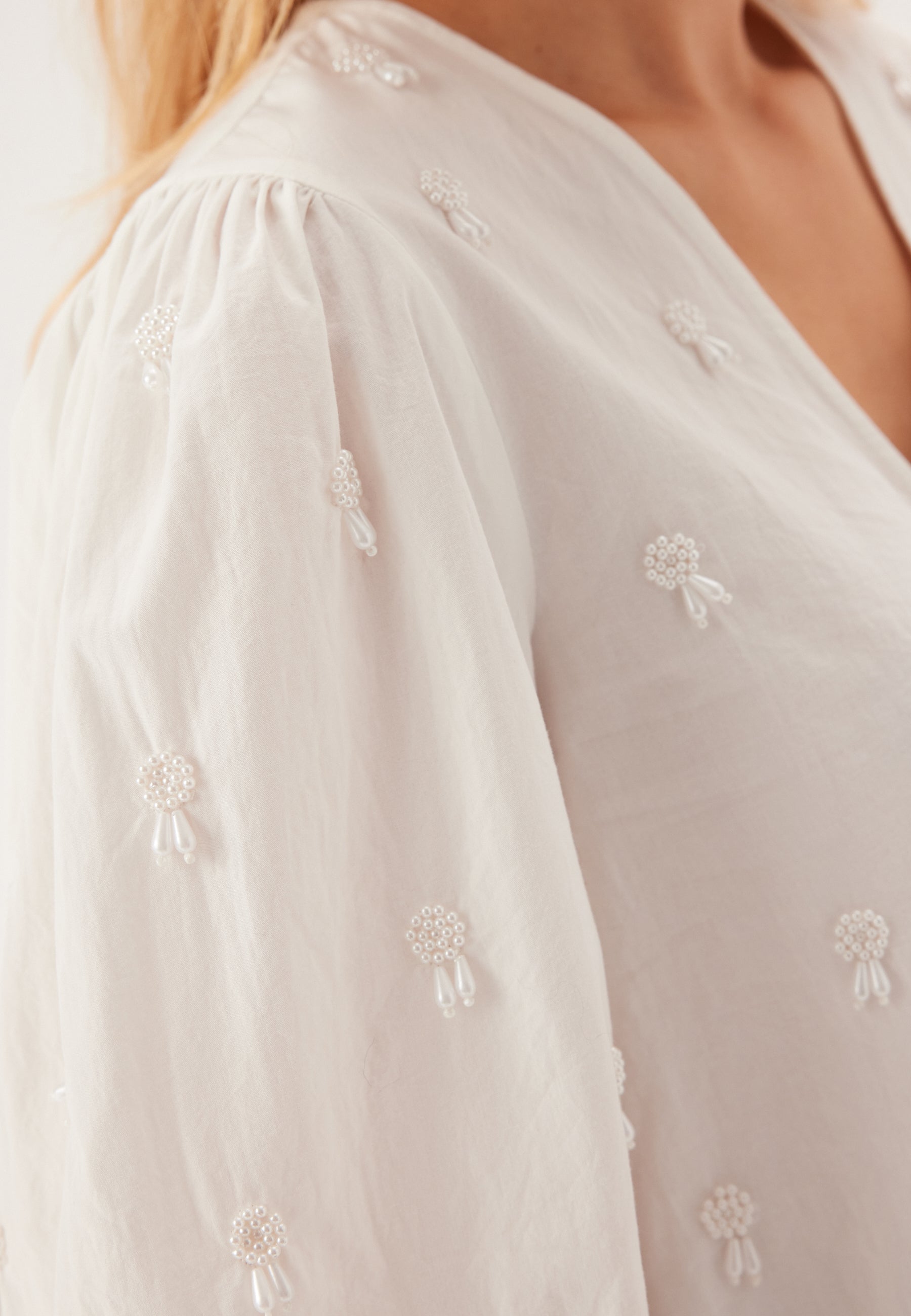 - Utsmyckning med pärldetaljer.