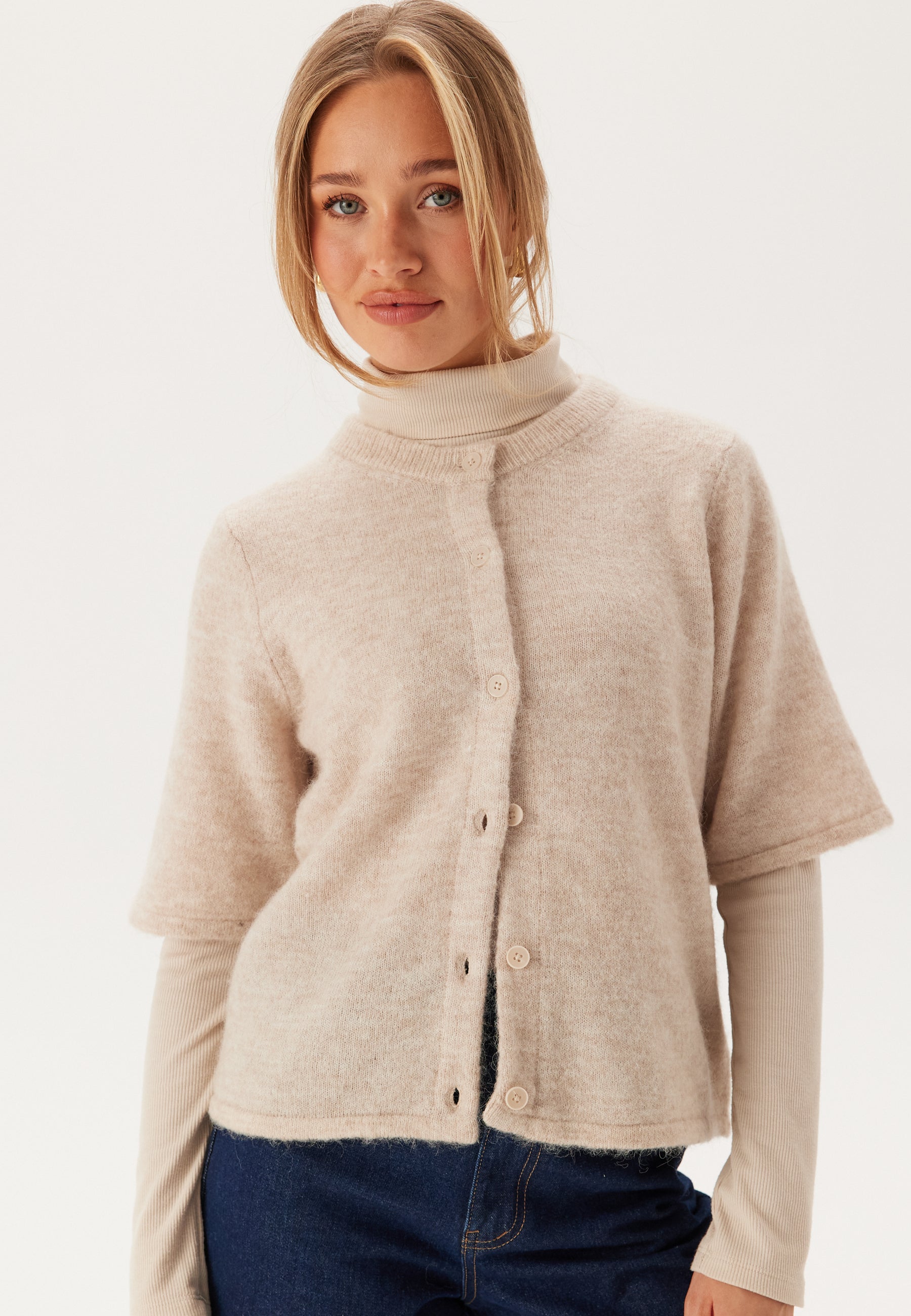 Stickad kofta med kort ärm.