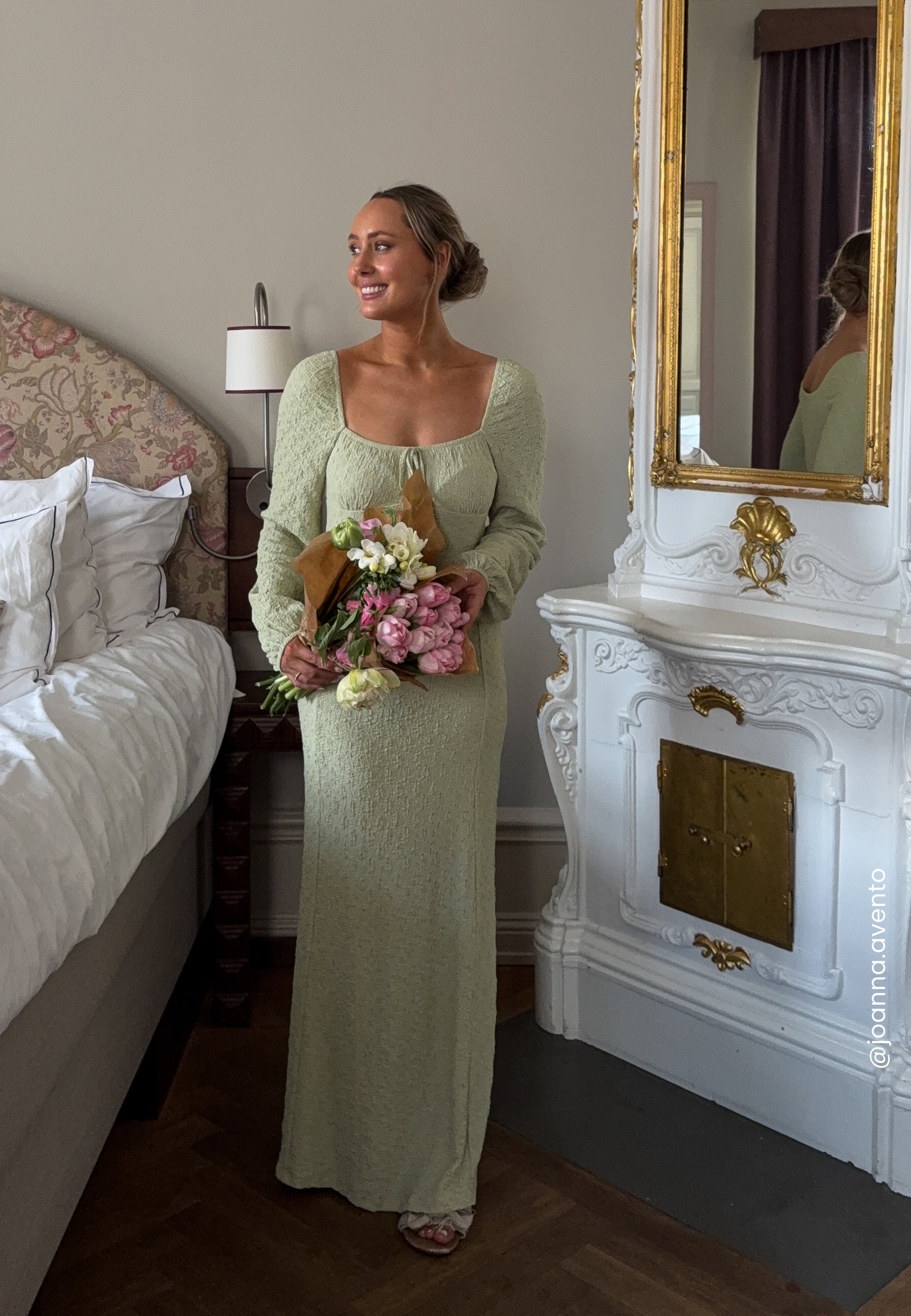Fest- och bröllopsklänningar kan upplevas som långa då vi vill ge dig som kund möjlighet att anpassa klänningen efter din längd eller dina klackar.