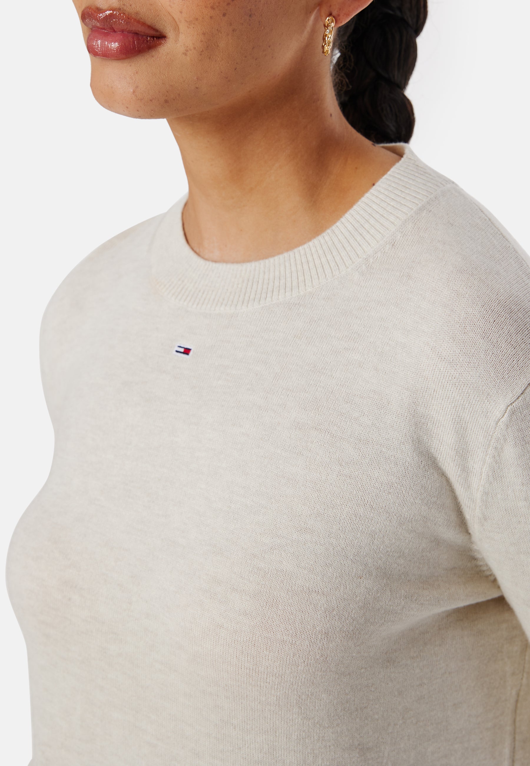 - Ribbstickad kant vid halsen, vid ärmsluten och nertill.