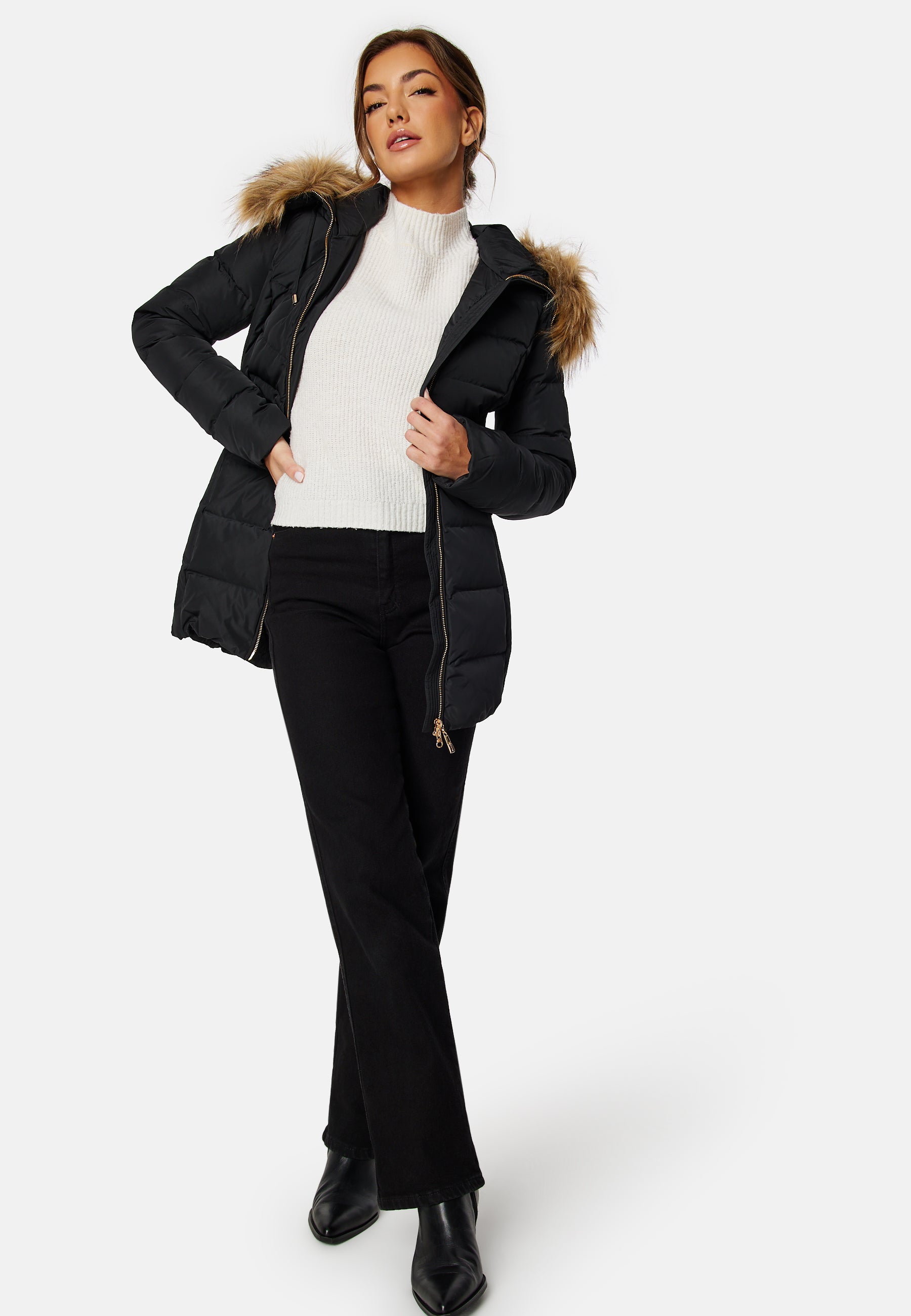 - Vadderad luva med avtagbar fuskpäls