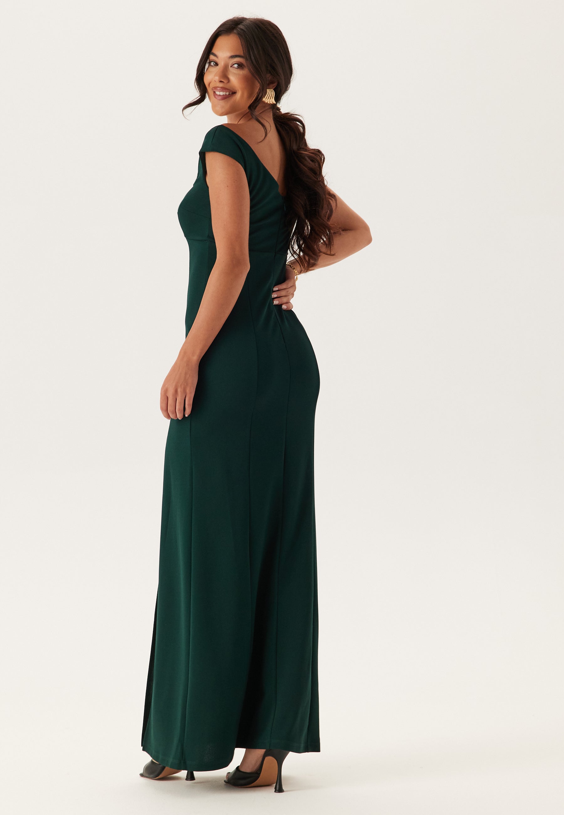 Den figurnära passformen balanseras av en slits i sidan som gör det lättare att röra sig och ger ett mer förlängt intryck, och överdelen är fodrad för extra täckning där det behövs som mest. En dold dragkedja baktill ger en ren och smidig finish, så att fokus ligger på den skulpterade off shoulder-ringningen och det eleganta fallet.