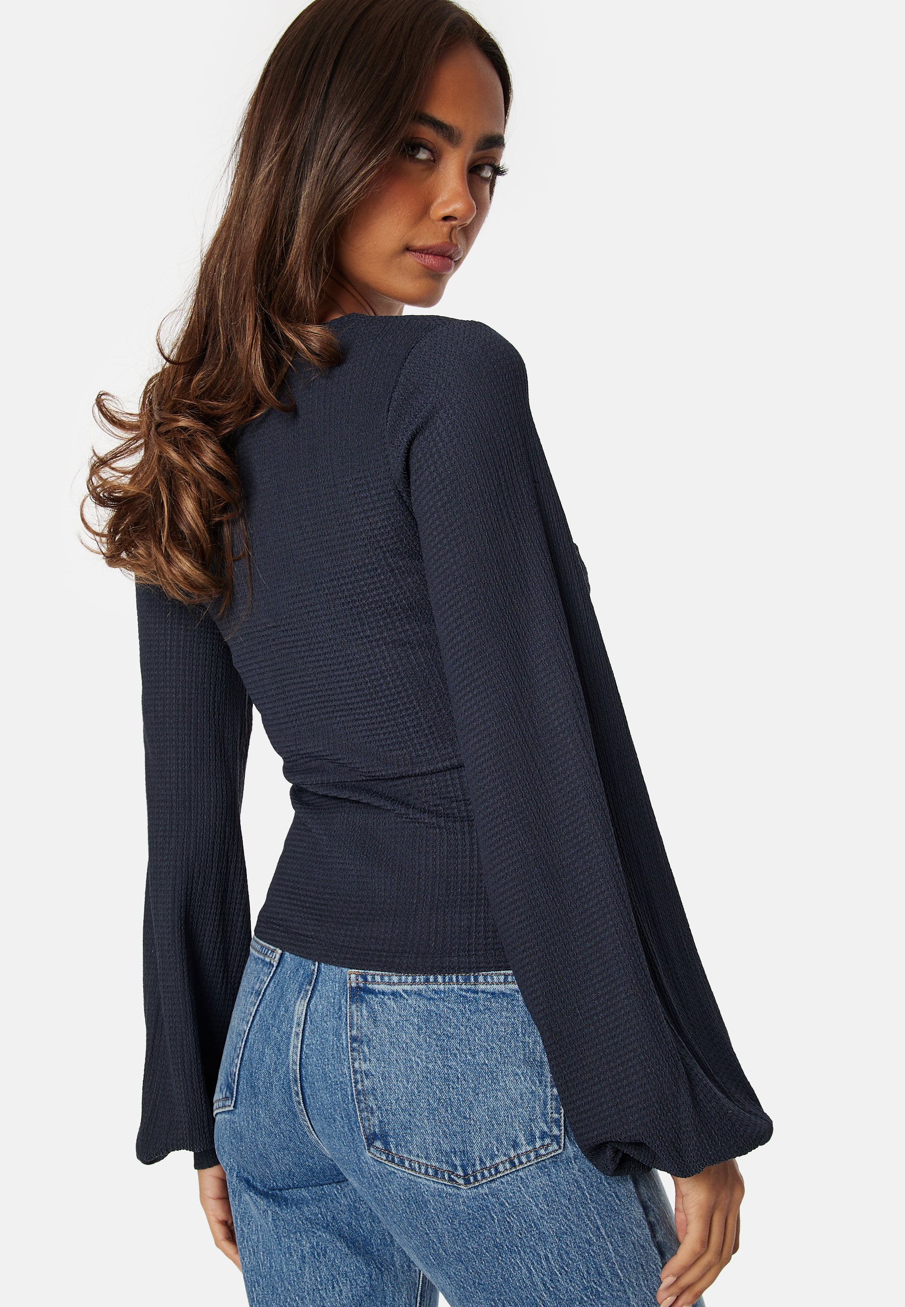 V-neck Puff Sleeve L/S Top
