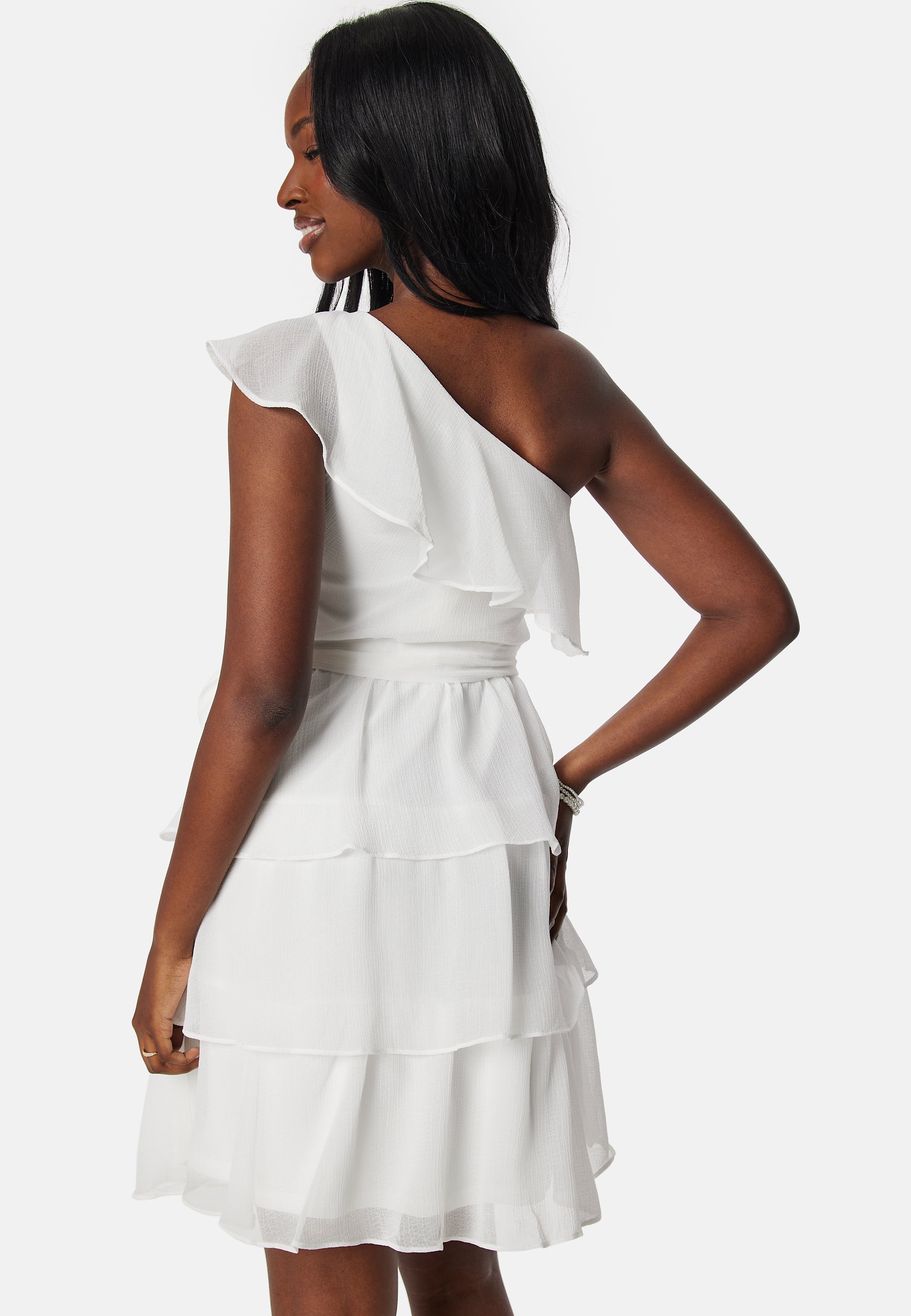 - One-shoulder design.