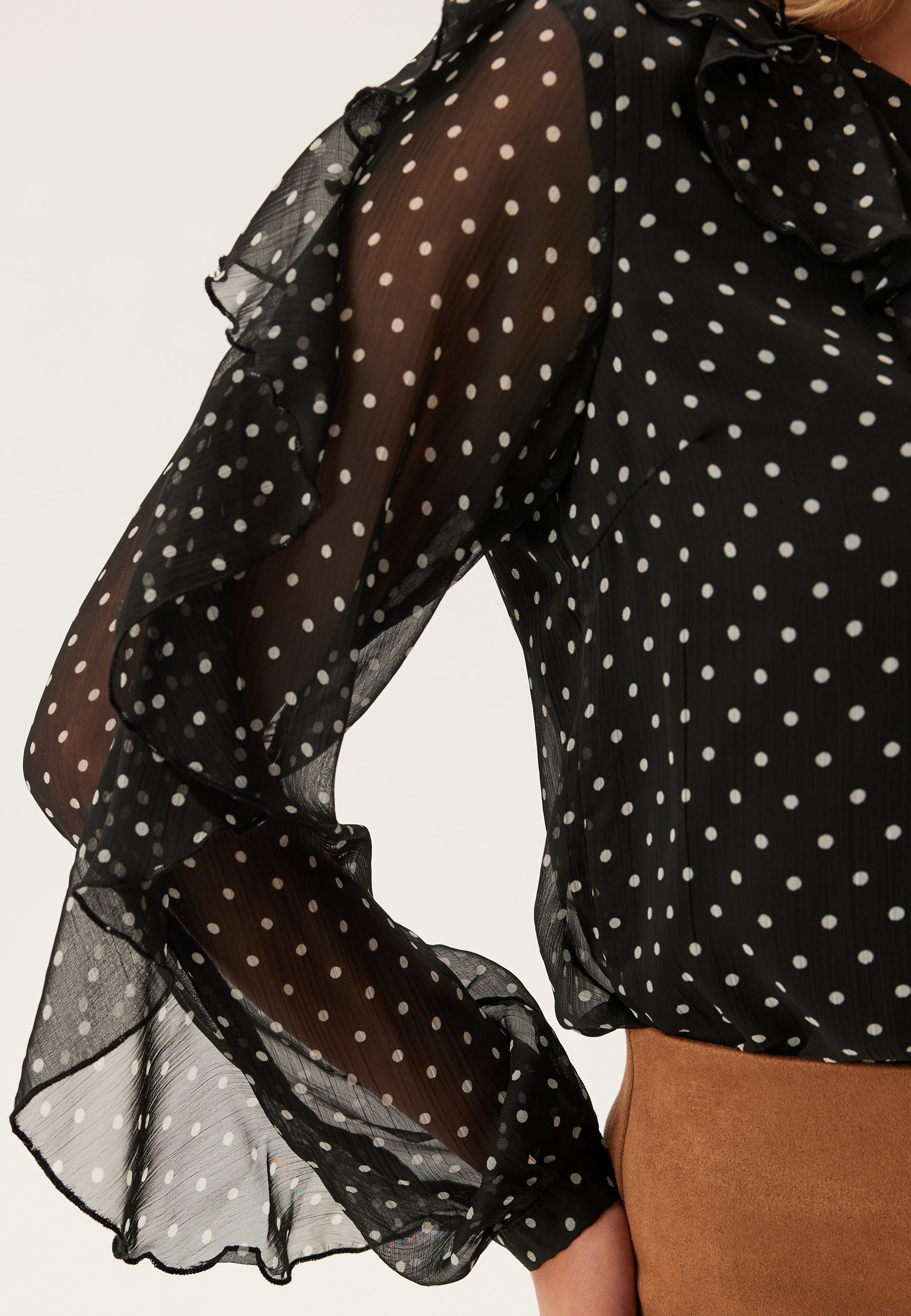 - V-ringad halsringning med volangdetalj