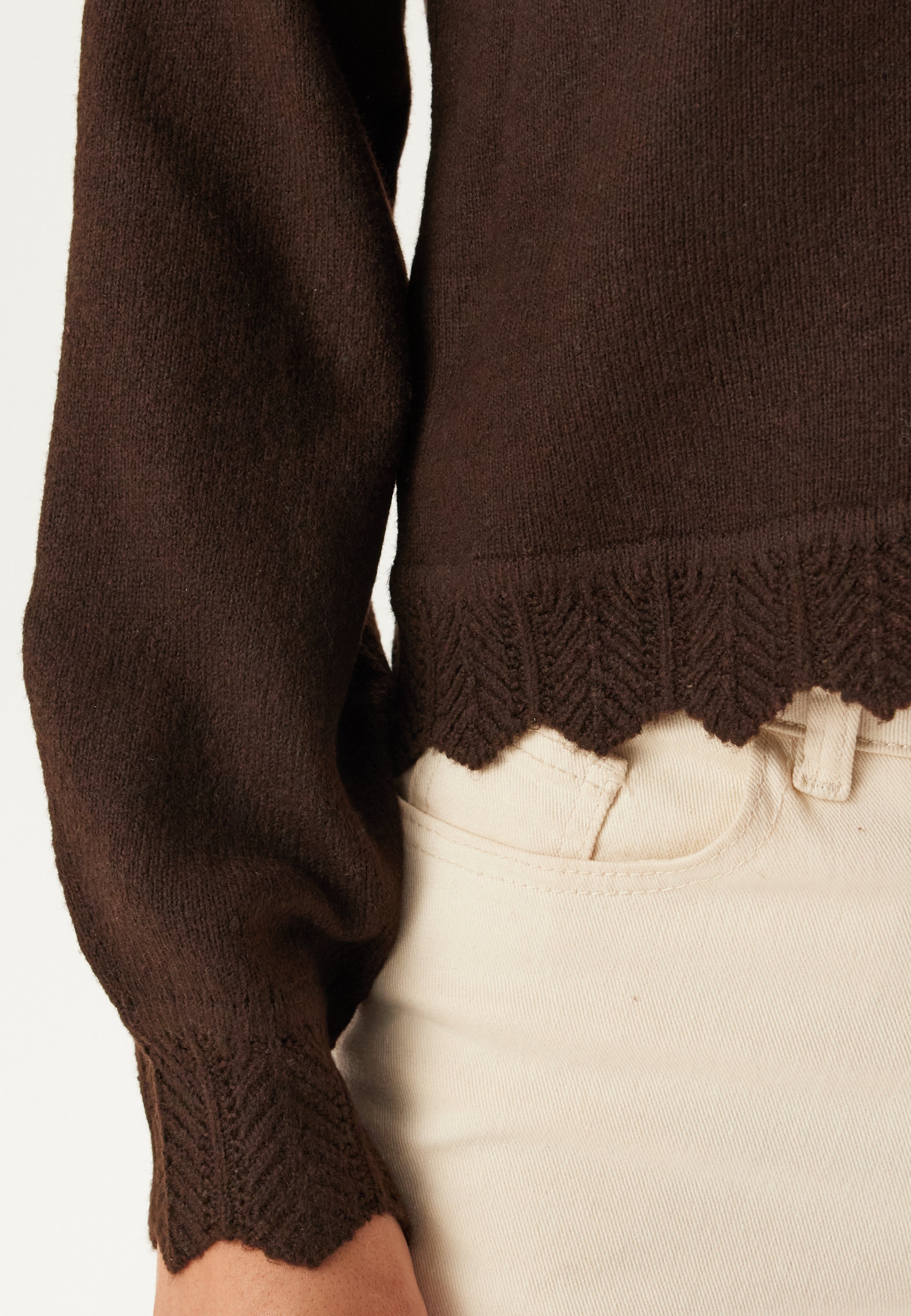 - Spetsdetalj på kragen, nertill och vid ärmsluten
