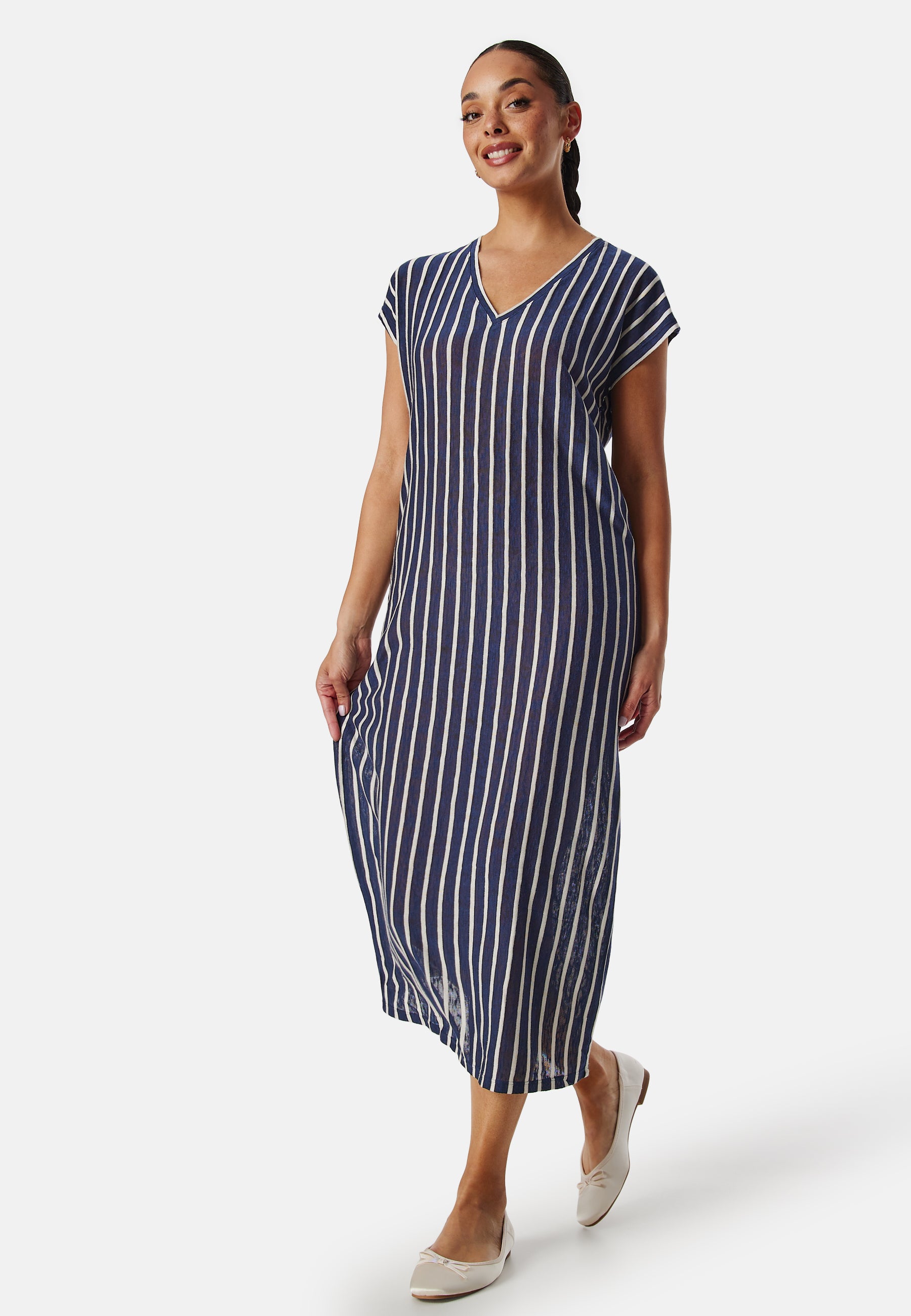 Randig, finstickad klänning från VERO MODA.