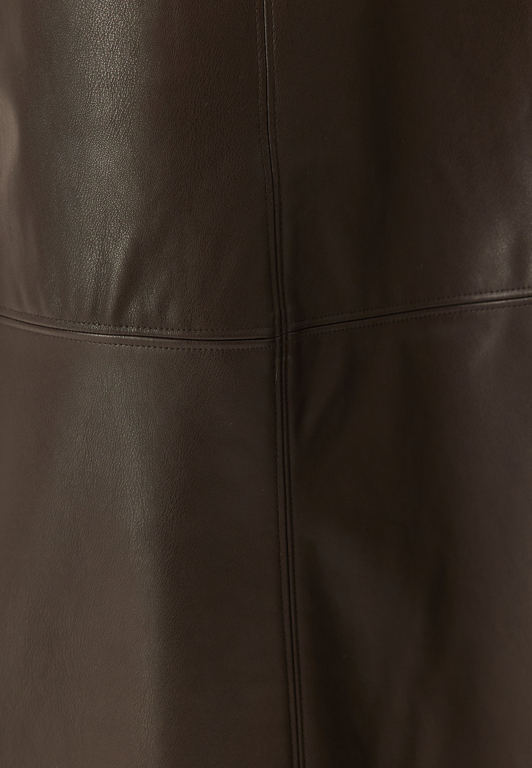 Den här midikjolen i konstläder med hög midja är ett enkelt sätt att ge vardagslooken ett mer välklätt uttryck och samtidigt addera lite attityd till middagar eller festkvällar. Den mörkbruna, coated ytan ger ett rent och slätt intryck, medan den utsvängda formen skapar ett fint fall som känns avslappnat, smickrande och lätt att bära.