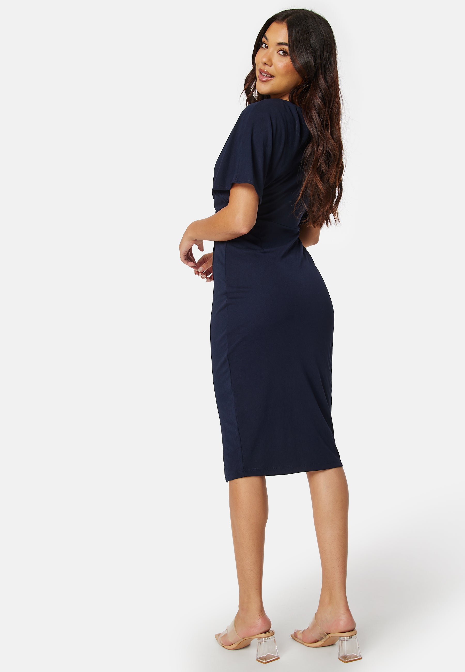 Stretchig jerseyklänning från Bubbleroom Occasion med en slits.